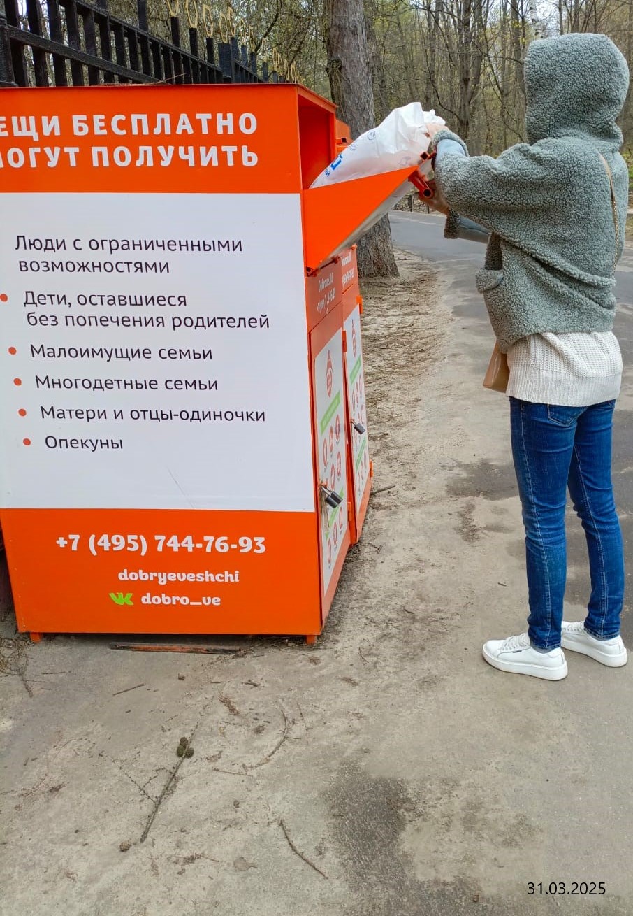 Социальный бизнес-проект «Добрые вещи» принимает одежду и текстиль, обувь для помощи в реабилитации детей с ограниченными возможностями здоровья. Также вещи отдают нуждающимся.