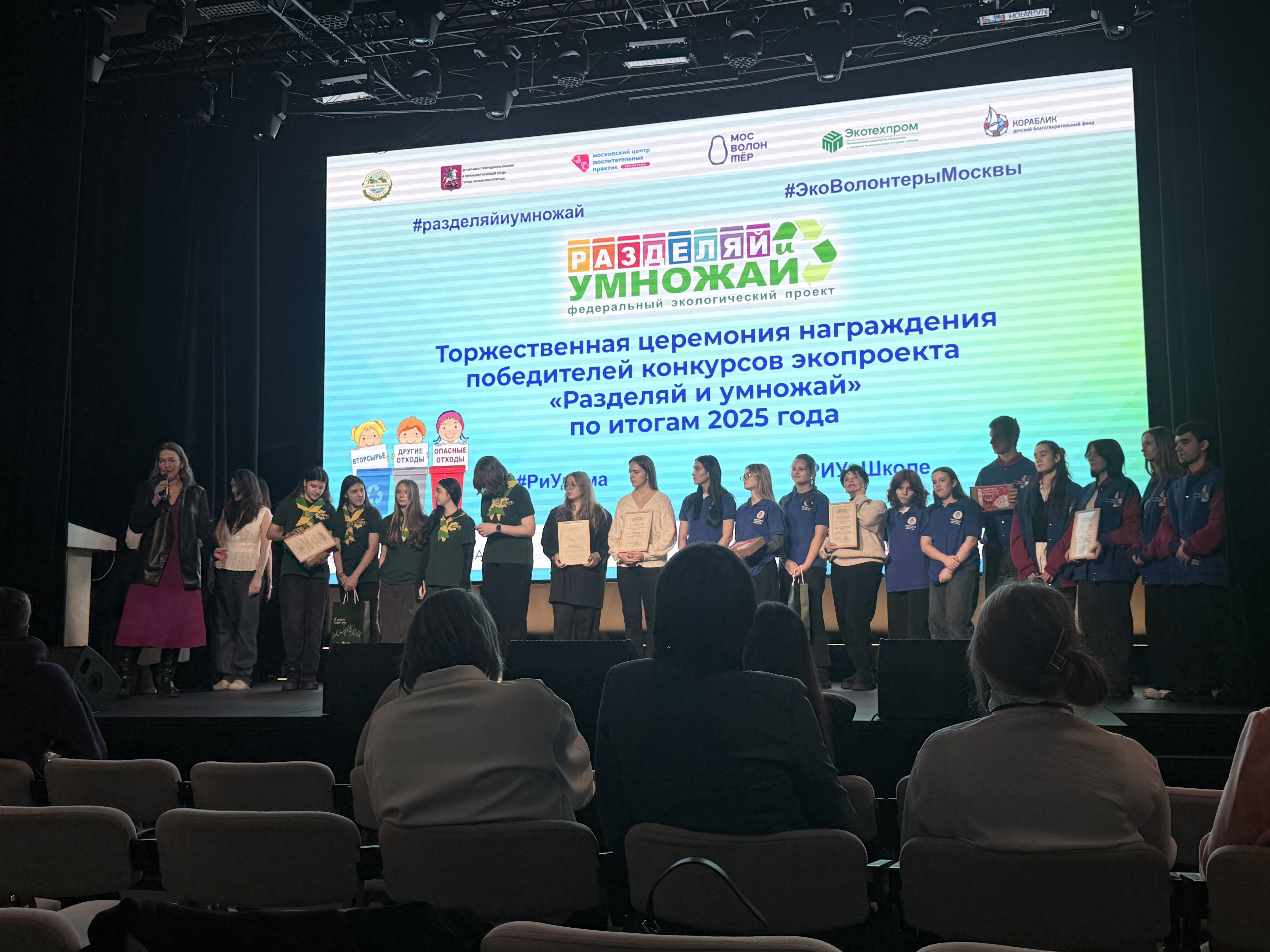 Участников мероприятия познакомили с актуальными экологическими пособиями и программами, рассказали о вовлечении школьников и студентов в волонтёрскую деятельность через мотивационные подходы. Кульминацией мероприятия стало награждение победителей экологического конкурса по сбору макулатуры в рамках проекта «Разделяй и умножай» по итогам 2025 календарного года. Вручали награды представители Департамента образования и науки, Департамента природопользования и охраны окружающей среды, Департамента ЖКХ и благоустройства города Москвы.