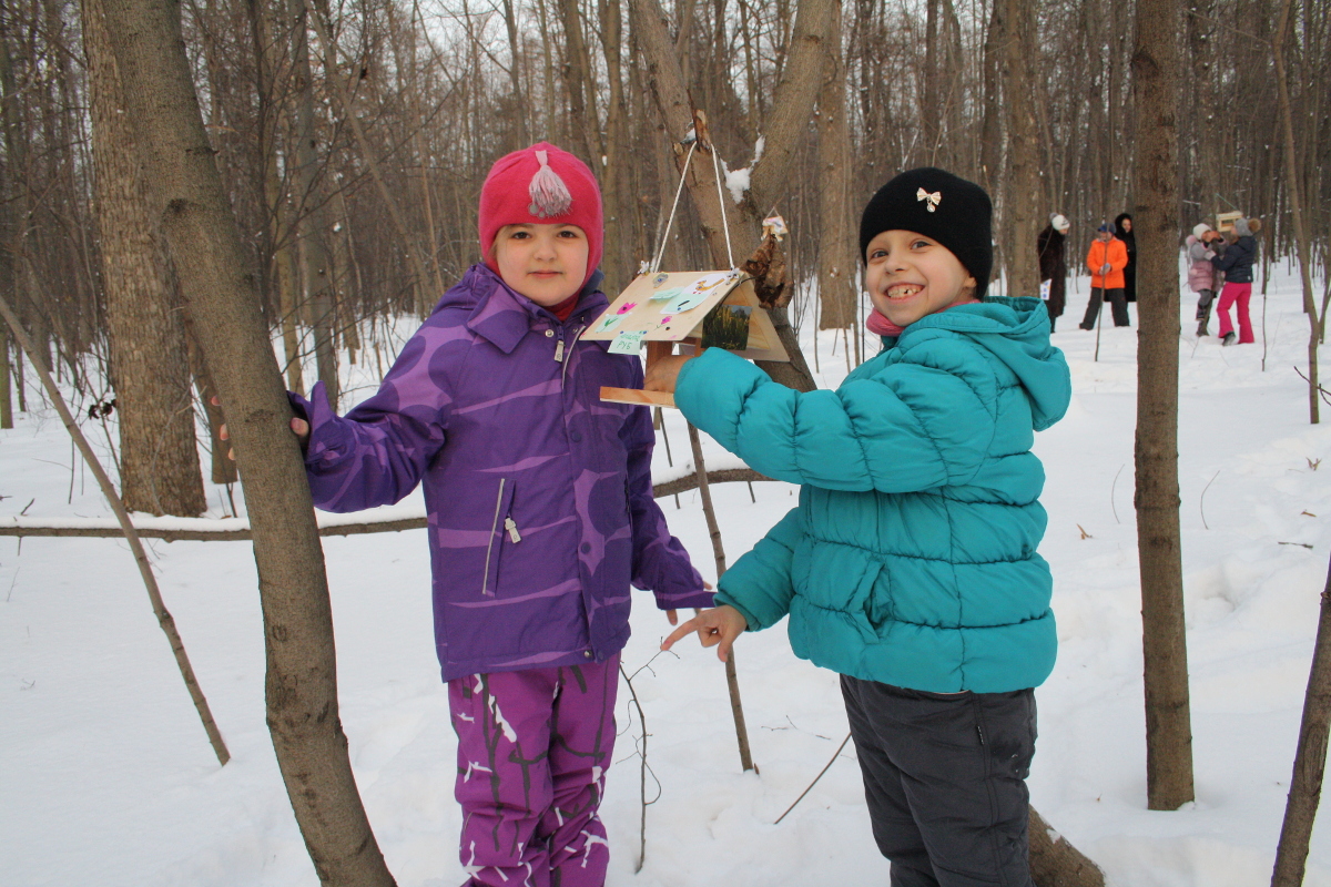 С готовыми кормушками ребята отправились в парк и развесили их недалеко от своей школы, чтобы регулярно наполнять кормом до наступления теплого времени года.