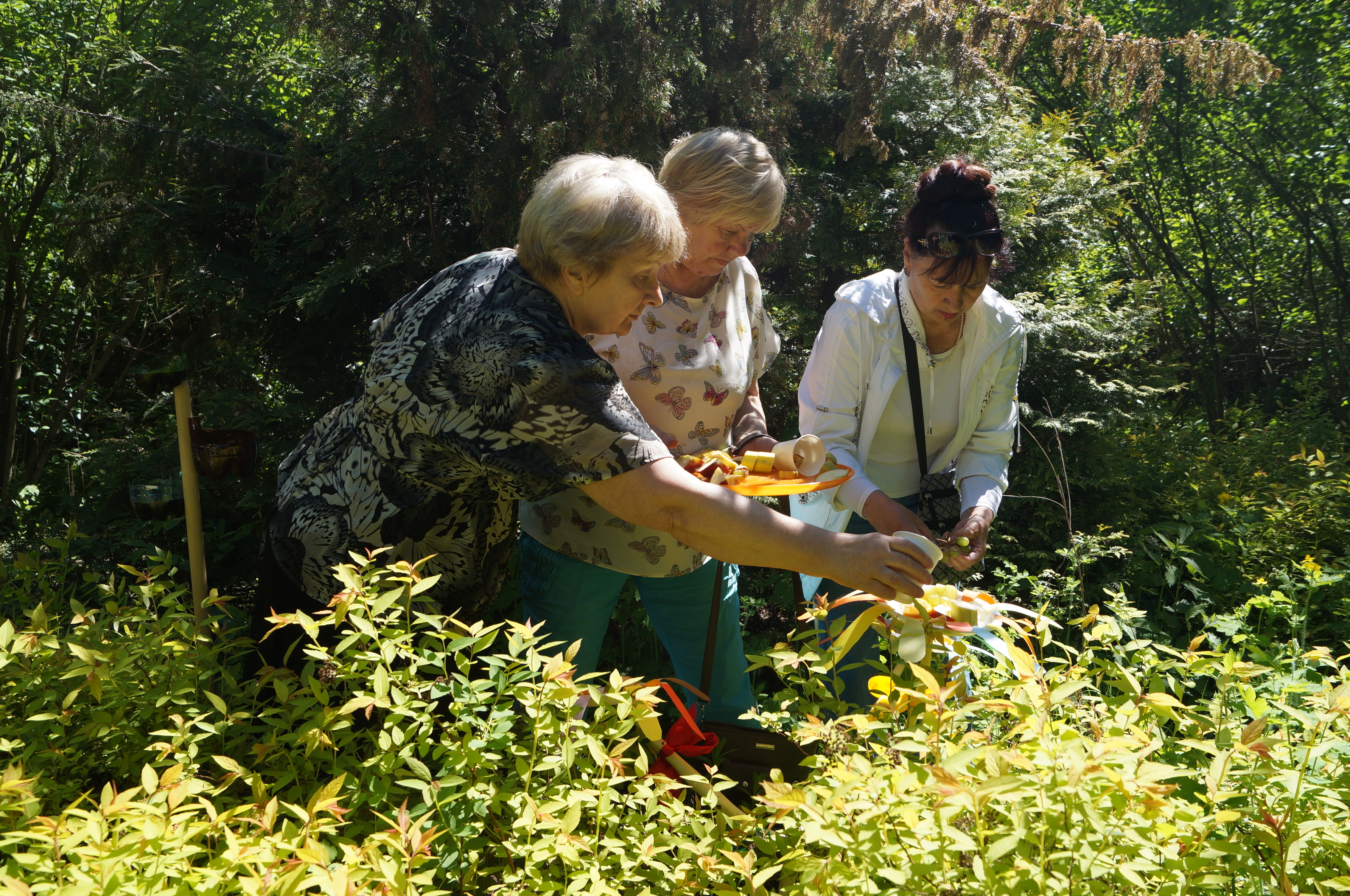 В первый день акции кормушки наполнили лакомствами для насекомых: кусочками фруктов, сиропом и нектаром. Экологи показали активным пенсионеркам, как правильно организовать трапезу для бабочек, и теперь они самостоятельно планируют делать это регулярно. А в вольерном комплексе на Кузьминской улице, д. 10 к ним могут присоединиться все желающие, ведь он открыт до осени с 10:00 до 17:00 каждый день, кроме понедельника. Ищите кормушки с тарелочками в форме цветиков-семицветиков! Кормушки простоят до конца августа. Кроме бабочек ими будут пользоваться и другие насекомые. Например, жуки-бронзовки, которые занесены в Красную книгу.