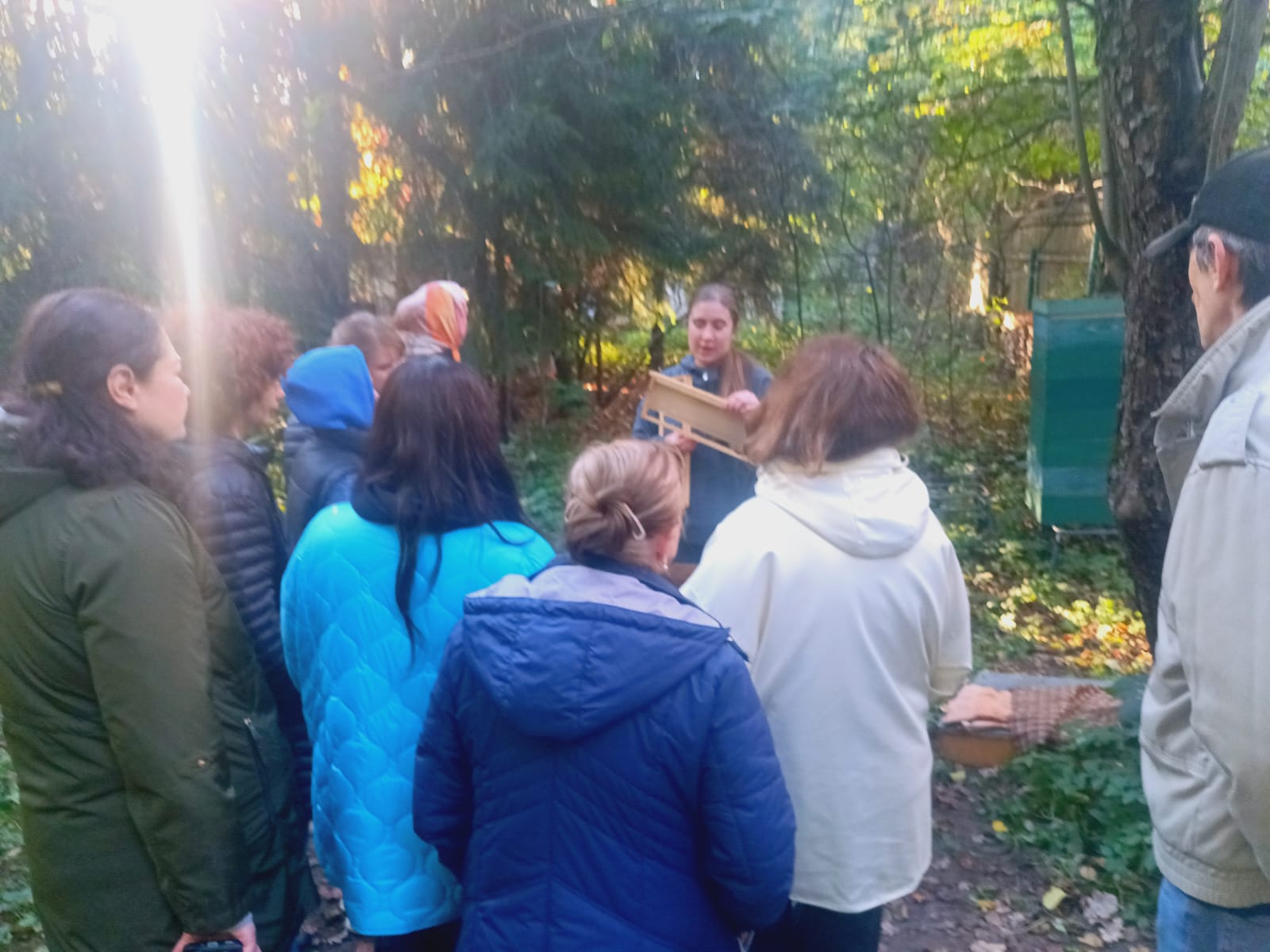 Для них была проведена экологическая прогулка по Кузьминскому парку с палками северной (скандинавской) ходьбы, во время которой экскурсантов познакомили с местной флорой и фауной, а также с обитателями вольерного комплекса и демонстрационной пасеки.