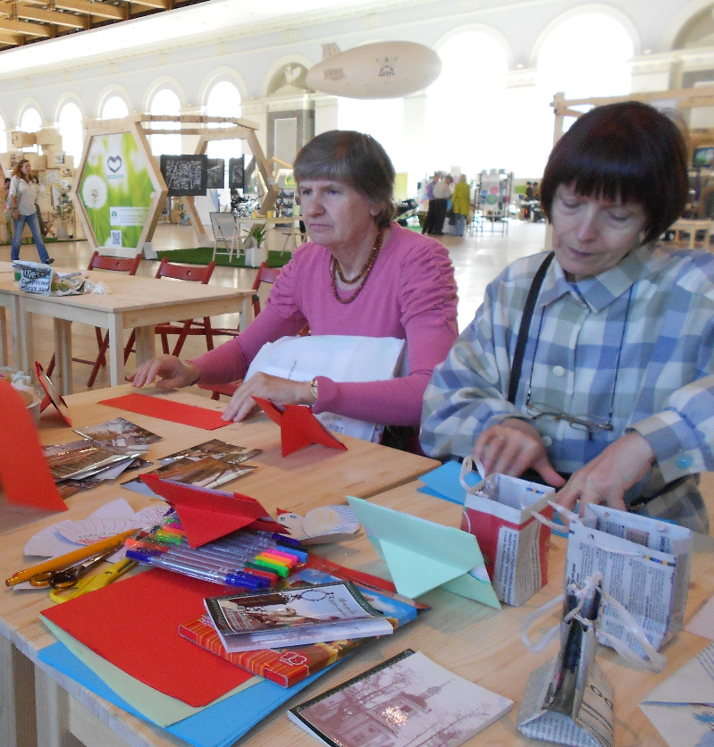 В этот же день сотрудники ГПБУ «Управление ООПТ по ЮВАО» провели мастер-классы по изготовлению шапок и упаковок из газет и фоторамок из цветной бумаги.